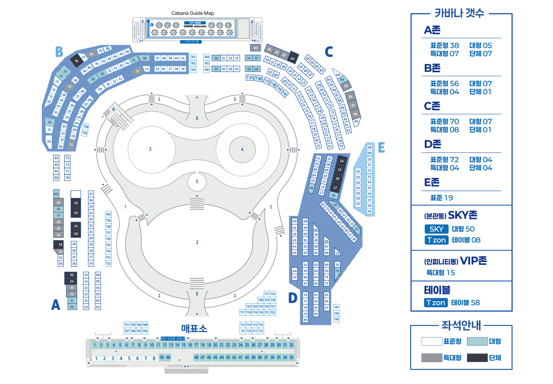A, E, VIP, SKY, T구역은 현장 우선 배정 좌석입니다.
